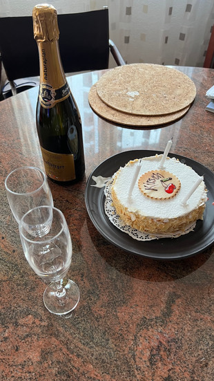 The cake had three candles, 65 just wouldn’t have fit! and Deniz, who’s been taking such good care of me, gave me a beautiful bouquet of flowers. For dinner, we ordered Indian food and enjoyed a quiet meal together. We’ll save the real party for another day!