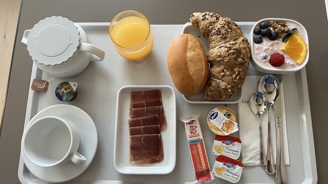 Am Donnerstagmorgen weckte mich der Nachtdienst um 6:45 Uhr zum Schichtwechsel. Die Routine begann wieder: Kontrolle der Vitalwerte, Medikamentengabe, und gegen 8 Uhr brachte man mir das Frühstück, das ich am Tisch einnahm. Man half mir beim Aufstehen und zog den Infusionsständer mit.